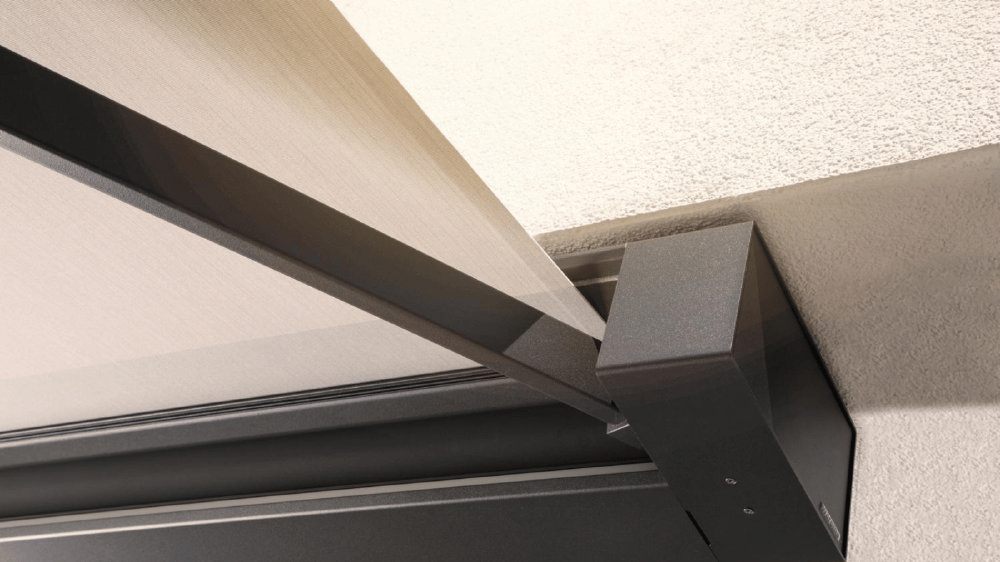 Durch den minimalen Montageabstand zu Wand und Decke lässt sich die Markise dezent installieren und fügt sich harmonisch in die Umgebung ein.